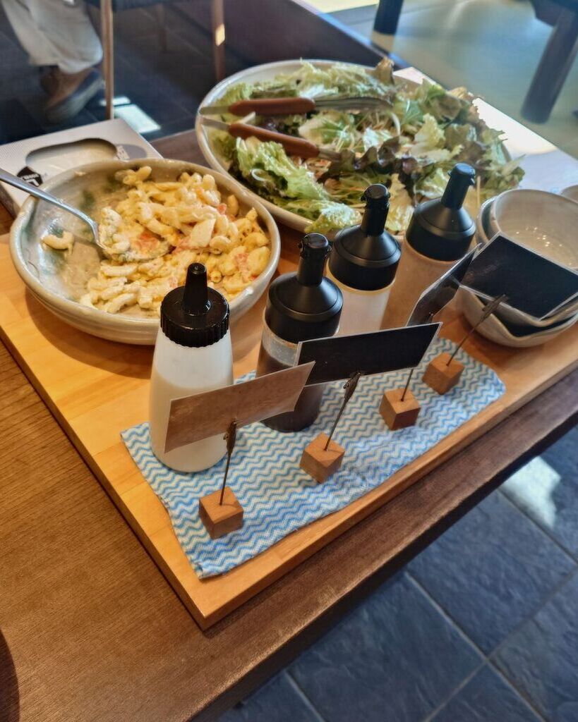 ずっと伺いたかった、花鳥風月さんにやっと伺う事が出来ました!メインを選び、お惣菜のブッフェ付きはとても楽しみです!メインを合盛り(茶蕎麦、そうめん)にして、シェアに自家製餃子、かき揚げ天もオーダーしました!お惣菜は、マカロニサラダ、きんぴら、切り干し大根、卵とじ等で、手作りの優しいお味が良いです!個人的には、卵とじがとても美味しかったので、何回も頂いてしまいました!デザートにコーヒーゼリーも有りましたよ!合盛りは、茶蕎麦は香り良く、そうめんはのど越しが良くて、生姜の薬味が爽やかな感じて頂けました!かき揚げもカラッと揚がって美味!餃子はジューシーで、どのお料理もとても美味しく頂きました!外の入り口近くには自販機が有り、卵、蕎麦の実、揚げ餅、野菜等も販売されていました!そちらは売り切れも多かったので、早めの訪問をお勧めします!美味しいお惣菜、お蕎麦、お料理色々ごちそうさまでした!ありがとうございました!また伺いたくなる、充実した花鳥風月さんでした!
