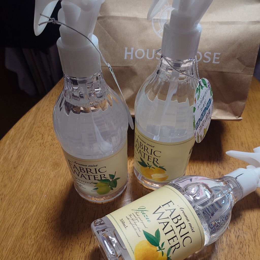 常備している、ファブリックウォーターをと伺いました!今月いっぱいで使える500円クーポンを頂いていたので、お得に購入することが出来て嬉しいです!ファブリックウォーターは香りも良く、除菌も出来るので、リフレッシュ出来て良いです!色々香りはありますが、私はベルガモット、柚がお気に入りです!部屋にスプレーするとリフレッシュ出来て、そして枕、布団にかけると、寝る時によい香りがして、気持ちよく眠れます!除菌も出来るのもありがたいです!身体に優しい、素敵な商品が店内にたくさん販売されています!アドバイスも色々して頂けますよ!お勧めのハウスオブローゼさんです!