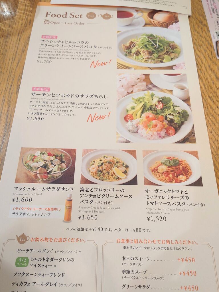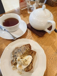 大好きなアフタヌーンティーさんに、またランチに伺いました!今日はお気に入りの海老とブロッコリーのアンチョビクリームソースパスタと、ディカフェのアールグレイ、そしてハーフサイズのバナナクランブルケーキをオーダーしました!パスタはぷりぷりの海老とブロッコリーが優しい味わいのクリームソースと合って、とても美味しいです!バナナクランブルケーキは、ほんのり香るスパイスとバナナが良い感じで、ディカフェのアールグレイととても良く合い、美味しく頂きました!他にも春のメニューがたくさんです!季節を感じ、幸せな気持ちになるアフタヌーンティーさん!ごちそうさまでした!ありがとう御座いましだ!