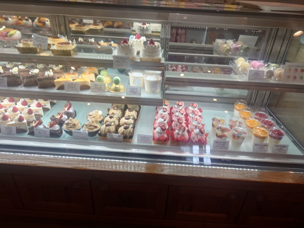 家族にお祝い事が有ったので、ケーキを購入しました!モンブランフレーズ、プリンアラモード、パウル、生チョコショート、ショートケーキです!私はモンブランフレーズを選びました!モンブランフレーズは、苺クリームの中にはカスタード、ヨーグルトクリーム、苺が入って、幸せな美味しさです!プリンアラモードはフルーツも飾られ、とても大きい満足度が高いです!生チョコショートも、まろやかなチョコレートが美味しく、お気に入りです!ショートケーキは、ミルキーなクリームと苺が合ったケーキ!パウルは、クリームチーズを使われた、なめらかなプリンが濃厚みたいです!それぞれのケーキがとても美味しく、家族が嬉しそうに食べていました!良いお祝いの日を迎えられて、良かったです!パンも種類豊富ですが、ケーキもとても充実しています!イートインコーナーも有るので、飲み物を購入して、ゆっくり頂くことも出来るのは良いですね!美味しいケーキごちそうさまでした!ありがとう御座いました!また楽しみにお伺いします!
