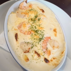 お気に入りのフィールドさんに、ランチに伺いました!本日のランチ、ビーフハンバーグステーキデミグラスソースにしました!そして、ホタテ貝柱と小海老のマカロニグラタンをシェアにオーダーしました!ランチには、サラダ、スープ、飲み物、デザートが付きます!ふっくら美味しいハンバーグ、添えてあるマッシュポテトもとても美味しいです!スープは優しいお味で、フレッシュなサラダは、ドレッシングも美味しいです!グラタンはホタテ貝柱、小海老、ベーコンも入って、クリーミーで味わい深い美味しさです!デザートに選んだ苺のトライフルとコーヒーで、大満足のランチでした!グランドメニューも豊富で、美味しいお料理がたくさん有ります!いつも美味しいお料理ありがとう御座います!!ごちそうさまでした!また楽しみにお伺いしたいと想います!