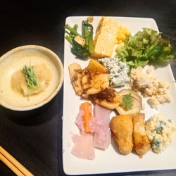 久しぶりに予約して家族とランチに伺いました!春のメニューです!前菜ブッフェスタイルで、メインを鰆と筍のあられ揚げにし、雑穀米、コーヒーを選びました!スイーツもブッフェスタイルです!旬な素材を活かされた前菜の数々、とても美味しいです!メインのあられ揚げは、衣がサクサク、鰆もとても身が大きく2切れも有り、大満足です!デザートも、あまさ控えめの和の素材を活かされたお品です!コーヒーと色々楽しみました!スタッフの方々の御対応も行き届いていて、とても心地良くお食事を頂く事が出来ました!いつも美味しいお料理、デザート、そして御丁寧な御対応をありがとう御座います!6月〜は夏のメニューです!季節折々の、美味しいお食事が頂ける、素敵な石の蔵さんです!