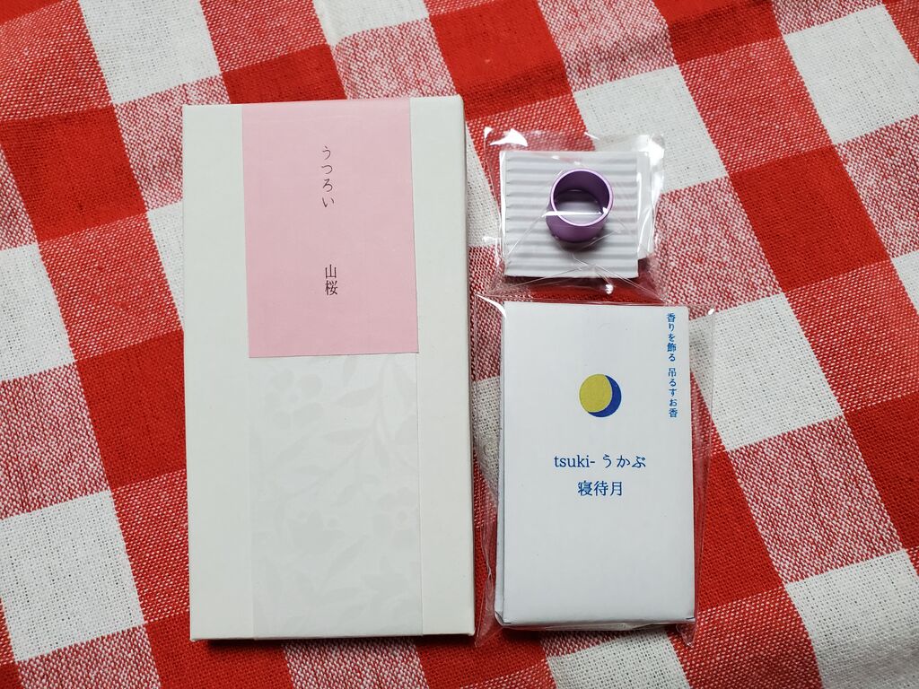 大好きなこちらのお香、お気に入りの『tsuki-うかぶ寝待月495円』の香りがかなり寂しい感じになり、新しいものを購入しにお邪魔しました。新月の形といつも迷うのですが、少し欠けた形の方がやっぱり可愛くていつも通りのをチョイス。無事に車に装着し、良い香りを楽しんでいます☆他に気になった『うつろい山桜1100円』『香立筒330円』をチョイス、山桜は本当に良い香りで、癒されます。香立てに立ててお部屋に置いておいてもふんわりと良い香りが漂い、リラックス効果抜群です♪火をつけてもふわりとした香りが漂い、使い方が広がりますね。香立筒には香の灰を詰めて使います。ずっと香の灰をうず高く盛って使っていましたが、なかなかバランスよく立てられず。また大きなお皿は使いたくなく…。となんとか無理くり使っていましたがこれは画期的^^この筒とセットのお皿もありますのでセットで揃えるのも良いかもですね!今回も素敵なお買い物が出来ました。