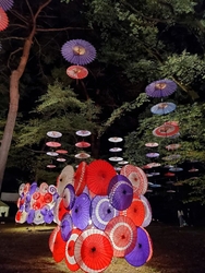 まむたんさんの口コミで、今年実施していることを知った月あかり花回廊。これは是非拝見せねば!!と意気込んで金曜の20時に到着。駐車スペースも広く取られておりましたが、平日の夜なので空いていてすんなり。会場内も近隣の宿泊施設にお泊まりの方や仕事帰り風の方がチラホラでゆっくり見て回れました。前回同様、入口周辺はアート作品や木彫りのふくろうがたくさん。キャンドルで足元を照らしていて幻想的であり暖かな光に包まれる空間。メイン?の和傘の空間は何度見ても異世界に迷い混んだかのような不思議な世界☆この傘に触れたら遠くの世界まで飛んでいってしまいそうな雰囲気すら感じます。竹灯籠や絵はがきのような行灯もあり、様々な灯りを楽しめる空間にテンション上がっちゃいました♪コロナ禍ということもあり、以前のような賑やかなイベントではありませんでしたが、落ち着いてゆったり楽しめる素敵な空間を作り出してくださった鬼怒川の皆さんに感謝です。こちらの鬼怒川公園でのイベントは10日までですが、11月30日まで開催されるいくつかの宿泊施設にもあるという傘の展示や、頂いたパンフを掲示すると受けられる美味しいサービスも是非受けつつ街中散策したいです^^