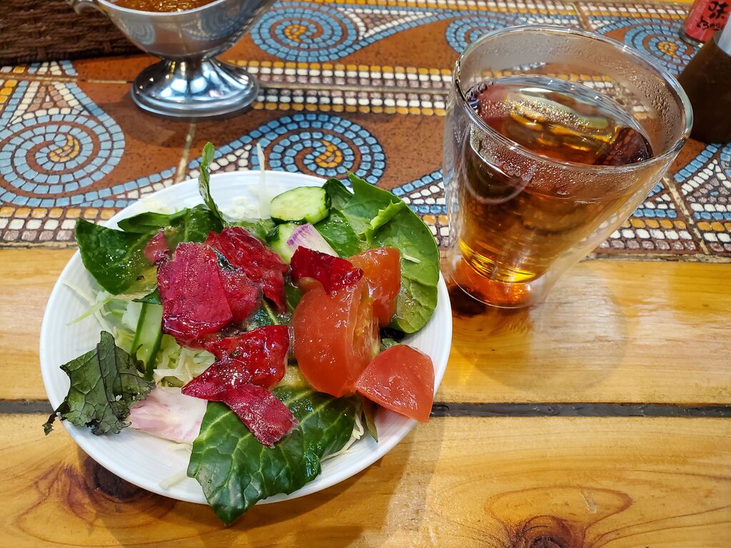 先月お邪魔したときにすごーく気になっていた、『和牛たたきと日光湯波のカルパッチョ1680円』『和牛入りハンバーグ150g1140円』を頂きたく18時少し前にお邪魔しました。が、お店の前も後ろの駐車場も満車!!外まで並ぶ大盛況っプリ。ど、どうしよう…と悩みつつもやっぱり食欲には勝てず。それでも、30分ちょっとで着席できました。メイン二種で結構ボリュームも凄そう…でも『ガーリックライス(1人前)365円』は外せない!!と悩み、店員さんに「万が一残しちゃったら持ち帰れますか?」と聞くと快く大丈夫ですよ!と。安心して『サラダ(小)450円』『ウーロン茶350円』もチョイスです。お肉ばかりだとバランスも…と悩みますが、ちゃんとサラダも一人前で出してくださるので助かります。気になっていたカルパッチョ、想像の何倍も美味しい☆トロリとした滑らかな湯波にレア~なお肉が食感、味ともに超マッチ!!時折ピリッと辛みを感じることもあり、それがまた絶品!!あっという間にペロリでした。ハンバーグはナイフをいれるとたっぷりの肉汁がジュワワワワワ~っと滝のように流れ出すほどジューシー^^ムギュっとお肉が楽しめるハンバーグは100gからオーダー可能で、50gごとに増やせますので、お腹の減り具合にあわせられるのが素敵。そしてガーリック効きまくりのガーリックライス。今回も一人前でお願いしましたが、メイン二種にやっぱりお腹いっぱいになってしまい…。お持ち帰りです。冷めても美味しいガーリックライス、チンすると香ばしくにんにくが香り食欲爆発♪途中レモンを絞ってさっぱり感プラス!絶品過ぎです~。ガーリックライス、大のお気に入りになってしまい、お会計時に、ガーリックライス単品のテイクアウトは可能か伺ったところ、問題なし!とのこと。今度はたっぷり二人前持ち帰って家でも堪能したいです。