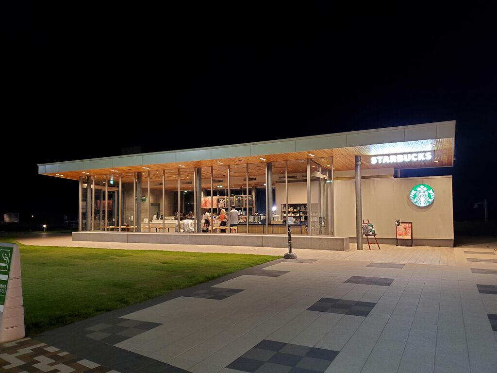 晩御飯を求めて一般入場させて貰いました。19時半過ぎだったのもあり、かなりの混雑っぷり。フードコートコーナーに行くと期間限定で岩下の新生姜とコラボしたメニューなどあり魅力的。サッパリしたものが食べたく、大根そばと耳うどんからヒントを得たみみ餃子をと思いましたが、全て完売。残念ですが、次回の楽しみになりました^^物販コーナーで以前から気になっていた『てまり窯の器560円』をチョイス。おちょこより少しだけ大きい器は、ちょこちょこ盛りをするのにぴったりサイズ☆土の風合いも出ていて素敵なお土産になりました。また、建設途中だったスタバが出来ており、すごーくおしゃれな作り。席数は少ないですが、SAでの休憩にぴったり。新発売の『ピーチフラペチーノ687円』を。桃の果肉たっぷりでとっても美味しい♪それをすぐそばのお空がひろいテラスで頂きました。高い位置にあるこちらのSAなので佐野市内の夜景が見れてすごく素敵。昼は富士山なども見えることがあるそうです。置かれているソファは、てっきり固いものだと思っていたら、低反発のような柔らかさがあり、ゆったりするのにちょうど良さそうです。素敵な場所に生まれ変わりましたね^^いつも日が暮れてからお邪魔しますが、昼間も見てみたくなりました!