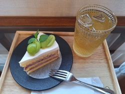 大好きな洋菓子喫茶シロツメさん。8月1ヵ月の長い夏休みが開けたので早速お邪魔しちゃいました!15時頃の訪問で、ケーキ1種が完売してしまいましたが、気になっていた『シャインマスカットと巨峰のムースケーキ700円』が、無事あったのでひと安心。今回はさっぱり緑茶系が飲みたいなぁと思っていたところ、店主さんから『紅茶(ロコンビアコロンビア)600円』をおすすめされ、香りを嗅がせていただくととっても好みの香り‼ホットだと渋みが出てしまうのでおすすめできないとご説明をいただき、アイスティーで頂かせて貰いました。ファーストフラッシュのような瑞々しい香りと、ほんのり渋みがあってお味がキュッと引き締まるような美味しすぎるお茶☆あまりにも気に入りすぎて茶葉購入したいくらい‼緑茶と紅茶の中間のようなお味で絶品過ぎます‼こちらの店主さん、お茶がとても好きなようで、様々解説してくださるので、そのときの気分で選べてすごく嬉しい‼合わせたケーキはしっとり爽やかなお味の生地と、ぶどうのムースがクリームのようでもあり、濃厚な旨味もあり絶品♪ケーキのスポンジもフルーツに合わせて配合を変えてるのだとか。そりゃどれを食べても美味しいはずですよね。今回も幸せ一杯のティータイムを満喫できました。シロツメさん、ありがとうございます‼