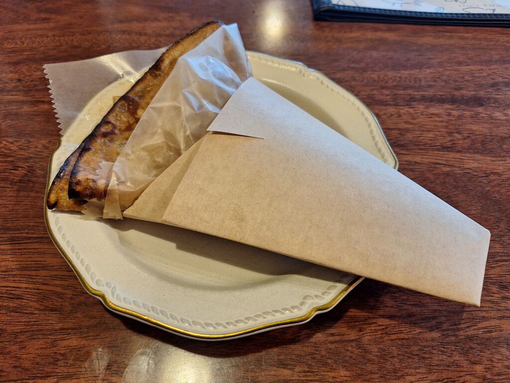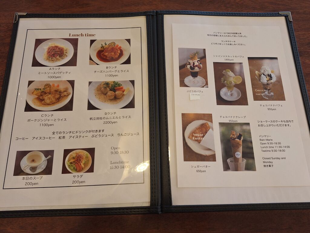 自分のお休みがこちらの定休日とドンピシャしてしまい、なかなか伺えなかった今年度。仕事をサボって久しぶり、15時前に来店できました。ケーキの種類は少し寂しくなっていましたが、お初の『シュガーバター650円』に、『ぶどうのショートケーキ580円』『スパイスチャイ600円』『レモンケーキ200円』をイートインで、『琥珀糖250円』をテイクアウトで頂きました。まずはオーダーが入ってから作り始めるクレープ!そういえばSNSで出てたっけ~と思いつつワクワク‼店主さんおすすめのシュガーバターは、登場からバターの香ばしい香りとシュガーの甘い香りに包まれなんとも‼手で持って食べることも可能ですが、熱々で断念。ナイフとフォークを用意くださったので、そちらを。さくっとした生地の表面、バターとシュガーのある内側はモチッと食感。口に入れると幸せ満載のお味に大興奮☆熱いのも気にせずハフハフしながらペロリの逸品。さすが店主さんのおすすめです‼クレープが食べ終わるとケーキ類を運んできてくれますが、こういった気配りを自然にしてくださるバンマリーさんの優しさにグッと来ます。アイスは桃とフランボワーズ、ぶどうのショートととても合うお味。ケーキもぶどうの爽やかさに、軽い食感のクリームとマッチしていて絶品♪たっぷりのぶどうも嬉しい。一緒に頂いたレモンケーキもとっても美味しく大満足。チャイもたっぷりのスパイスで体も暖まる逸品^^美味しかった~!帰宅してから食べようと思っていた琥珀糖、見当たらないと思ったら、母にやられました。。。是非ともまた仕事サボってリベンジしに伺います‼