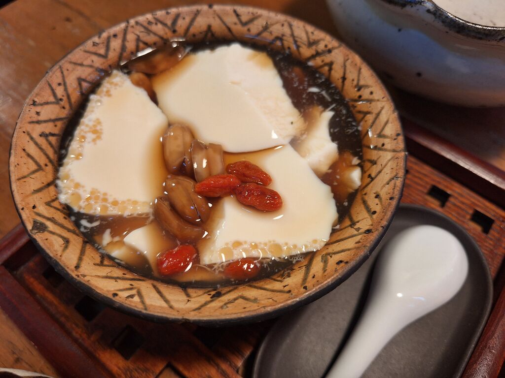 心の癒しを求めて14時前にお邪魔しちゃいました。気持ちが疲れたときや、自分と向き合い気持ちを整理するのに台湾のお茶はなんとも最適^^良い香りとお味で気持ちをほぐしてくれます。今回はお初のお茶『馬烈覇高山茶2025年春(店内)1000円』に『豆花小さいの350円』『米粉の馬拉糕300円』をチョイス。焙煎の少ない高山系のお茶が特に大好きな私としてはこのお初のお茶、気になりまくり。ものすごーく爽やかというわけではありませんが、初っぱなから最後まで味がほぼ変わらない力強いお茶で、お花の香りというよりは果実の香りがします。何よりも飲み口が穏やかで飲みやすく、お話しつつまったりした時間を過ごすのに最適☆名前が激しく感じられるのに、心を軽くしてくれる美味しいお茶でした。お試しで登場していた米粉の馬拉糕。これが黒糖風味で優しい甘味にもっちりとした食感、胃に負担のかからない優しいお味と食感で美味しい‼お茶とも良く合う素敵おやつ♪レギュラー化したら良いのにと思ってしまうほど。大好きな豆花ももちろんチョイス^^たっぷりと数時間癒されてきました‼帰りにはハマってしまった『馬烈覇高山茶2025年春(茶葉)2100円』を。自宅でも美味しく頂き、日々のストレスを癒されてます。何度も通ってるのに、新しくかつ、美味しいお茶に出会えて店主さんに感謝です。