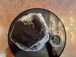 友人の天然氷のかき氷が食べたい!とのリクエストで、10時半過ぎに到着。既に三組の方が整理券を取られており、まだまだかき氷が恋しい時期の模様。並んでる間もどれにしようか悩みまくって、『黒胡麻ミルクマスカルポーネ1550円』をチョイス。運ばれてきたかき氷はグレー&ブラック。なんともなかなかかき氷で見ないお色。一口口に含むと、胡麻のお味と香りが濃厚で絶品‼ふわっふわのマスカルポーネとも良い相性で美味しすぎます☆中心には香ばしいクルミも潜んでおり、食感、味ともにぴったり‼友人は白桃ミルクをチョイスしていましたが、都内で食べたものに比べてとても美味しく残すこと無くペロリと食べられちゃった‼と大喜びでした♪まだまだこの時期でも人気のかき氷、様々種類があるので、ぜひまたお邪魔したいです^^