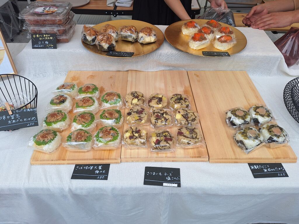 ふらりと訪れた鑁阿寺で開催されていたマルシェに、こちらも出展しており、13時頃お邪魔しました。この時間で5種のおむすびが並んでおり、『さつまいもチーズ塩こんぶ330円』『スモークサーモンクリームチーズ炙り味噌330円』をチョイス。途中移動しながらいただきました。さつまいものほっくりとした甘味と、塩昆布の塩味、チーズのコクが合わさったおむすびは、やっぱり斬新ですが、これ美味しいです☆秋の味覚がしっかり楽しめ、甘味と塩味のバランスが良いので癖になります。サーモンにクリチがくるりと巻かれ、おむすびに鎮座したこちらのお品。サーモンとクリチの組み合わせは絶品♪臭みもなく美味しくペロリです。お店の定休日が、私の仕事の休みと被るようになりなかなかお邪魔できなくなってしまいましたが、タイミング狙ってまた伺いたいです^^