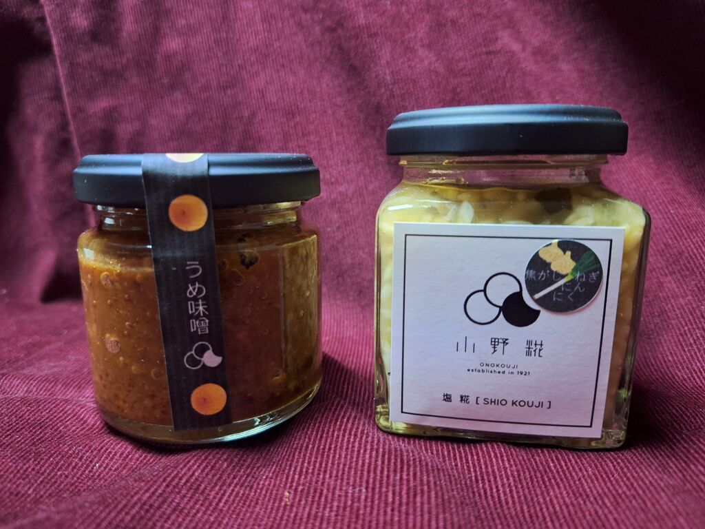 栃木市の家具のコマツヤさんで、時おり開催されるカグヤデマルシェでこちらの大好きな麹商品をゲット!『うめ味噌』『焦がしねぎにんにく(塩麹)』をお持ち帰りです。梅の酸味と味噌のコクが合い、さっぱりとした後味のお味噌に大変身。納豆に混ぜたり、お豆腐にのせたりしながら楽しんでいますが、単純に白米に乗せてもバッチリ♪塩麹はお味によっていろんな使い方が出来、小野麹さんは私にとって塩麹の美味しさと面白さを教えてくれた大恩人‼最近は塩を使わずこちらの塩麹が塩味になっている重要な調味料。今回の焦がしねぎにんにくはお肉料理に使うともちろんぴったりですが、冷奴にあわせると絶品過ぎ☆焼きうどんの味付けにもぴったりで、使い勝手が良すぎです。ぜひまたお店にも機会を伺ってお邪魔したいです!