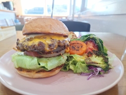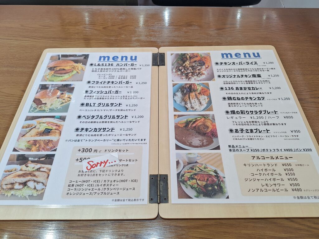 すっかりハマってしまったこちら。美味しいランチをいただきたく13時前に到着。平日のため混雑なくすんなり着席。ベジタブルグリルサンドがすごーく気になりましたが、人気のため完売。バーガー類もすごーく気になっていたので『L&S136ハンバーガー1350円』を『トッピングチーズ200円』と、『カフェラテ300円』『本日のスープ250円』を追加してオーダー。嬉しいことに、バーガーのポテトをサラダに変えてくれるというサービス‼前回お邪魔した際に、野菜が美味しくて、と発言したのを覚えててくださってのご提案に、数回しか伺ってない私のことを覚えててくださるのと、臨機応変に対応してくださる懐の広さに感動です☆バンズはしっかり焼目が入り、噛むとサクッと良い音。厚みのあるパティにたっぷりのお野菜、パティに絡んだチーズが絶品。厚みがありすぎて上から下まで一口で噛めない。ジューシーなパティからでる肉汁を、バンズが受け止め最後まで美味しくペロリ。サラダとグリル野菜もたっぷり盛り付けてくださり、超ヘルシーで大満足‼幸せすぎる^^本日のスープも美味しくて、たっぷり堪能♪カフェラテで締めて幸せなランチタイム満喫させていただきました‼今回食べられなかったベジタブルグリルサンドも食べたいし、限定のジビエバーガーも気になるし。ご近所の方が羨ましいくらいお気に入りです。