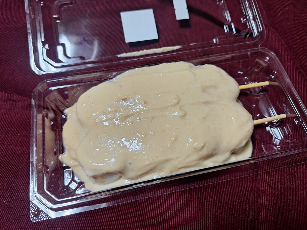 美味しいお団子を目当てに閉店間際にお邪魔しちゃいました。この日はどれも売り切れなしというラッキーで、『桜あんのモンブラン400円』『ごま190円』『落花生220円』『うぐいすきなこ190円』をチョイス。桜の葉を混ぜ混んだ餡の上に、桜の花を練り込んだピンクの餡を細く絞り出した桜あんのモンブラン、もっちり柔らかなお餅に餡がたっぷりすぎて、重くて持てな~い^^ってくらいニンマリしてしまうボリューム感‼桜の香りと味が口いっぱい楽しめる美味しいお花見団子☆満足感も抜群でした!そしてごまも頂いたのですが、購入時はお餅の上にこんもり乗っていたごまペースト。帰宅してみるとお団子の形がわかるくらい底に溜まっており、見た目からもわかるくらい滑らかなペースト。そして容器の半分くらいまでたっぷり入っていてさらにビックリ‼お団子に絡めつついただきましたが、濃厚なごまの旨味に甘じょっぱいお味が癖になる美味しさ♪1本1本、ボリュームがあるので満足感ハンパなしな美味しいお団子。お餅も柔らかく絶品。是非ともまたお邪魔してたっぷり堪能したいです。