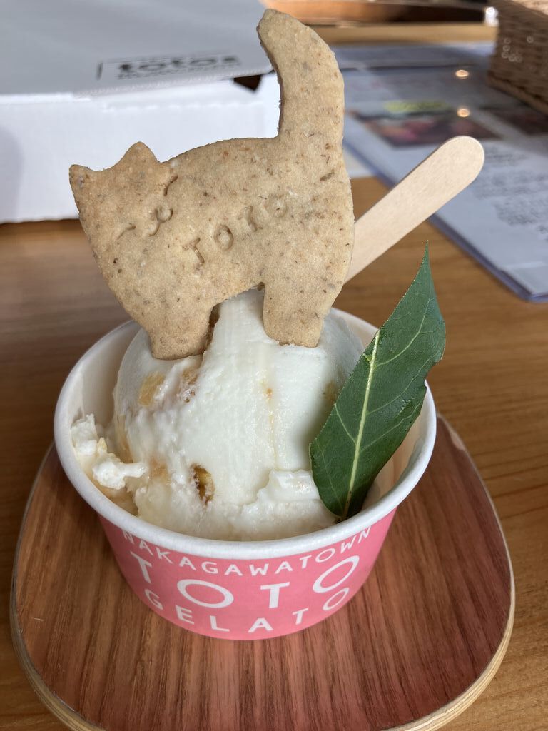 栃ナビでプレゼント「シングルカップ(アイス)当選のお知らせにビックリ!嬉しくて、せっかくなので気になっていたピザのランチと一緒に、と初訪問です。街外れの閑静な場所に、テラス席もあるお洒落な出立ちのお店。震災後のオープンと伺いましたが、内外ともとても綺麗で、テーブル席もゆったり落ち着けます。庭の隅に大量の薪が積まれていました。ランチセット(ミニサラダ、ドリンク付)でロマーナピザをチョイスしました。いや〜、久しぶりに本格的な味わいのピザでした!薪を使ったピザ窯の焼き上がりも素晴らしく、ちょうど良い厚みでモチモチした生地、学生時代のイタリアンレストランで覚えたアンチョビピザの旨さを思い出させる程よい塩気の効いたモッツァレラベースの具の旨さ。手が止まらず大ぶりの1枚でしたがあっという間に食べちゃいました。前菜のミニサラダも想像以上のボリュームで、バルサミコの酸味が絶妙です。サービスのミネストローネスープも色んな野菜がたっぷり、味わい深かったです。プレゼント当選のアイスは「いちじくミルク」、可愛いトトのロゴ入り猫ちゃんのビスケットが鎮座したカップアイスも濃厚で、たっぷりのホットコーヒーのお供にこれまたペロリ。お店のスタッフさんの丁寧で親しみやすいステキなおもてなしにも感動です。テイクアウトしたマルゲリータ&クアトロフォルマッジョピザもオープンで温め直し、美味しくて瞬殺でいただきました。ご馳走さまでした。今度はテラス席にワンコと一緒にお邪魔したいな。
