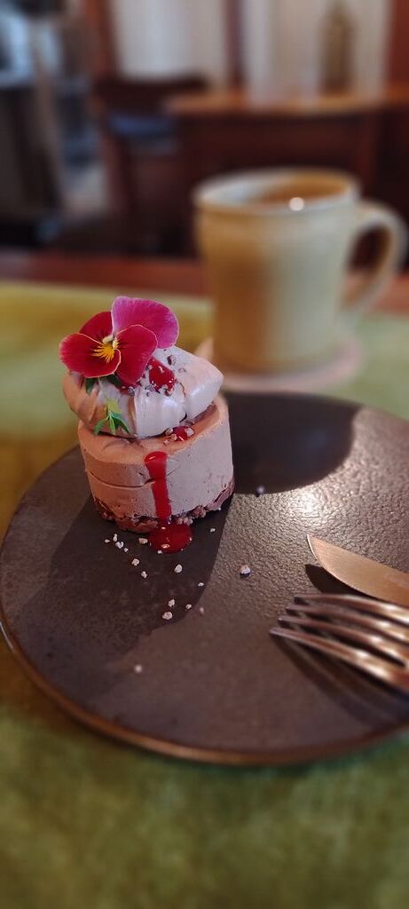 ランチの後、お茶をするところを探していて、地図で見つけたこちらのお店に、電話の上初めてお邪魔しました。あとに予約が入っているとの事で1時間ちょっとの訪問となりました。ナビでお店に向かいましたが、本当にここにあるの?という場所にお店がありました。到着すると、素敵なエントランスからお店に向かい、靴を脱いでお邪魔します。飲み物メニューはテーブルに置いてありますが、ケーキは店主さんが現物をテーブルに持ってきて下さって、1つずつ説明してくださいます。迷った結果、ゼラチンを使わずにチョコで固めたというチョコ系ケーキをオーダー。それに合わせ、苦味コクのあるコーヒー、ヨーロピアンスペシャルにしました。ケーキは台がサクサク香ばしく、チョコムース部分は濃厚滑らかで、酸味のあるラズベリーソースがよく合います。お店にいる間にも次々電話が鳴っており、フラッといらして満席で帰られたお客様も何人も!伺う際には予約をおすすめ致します。