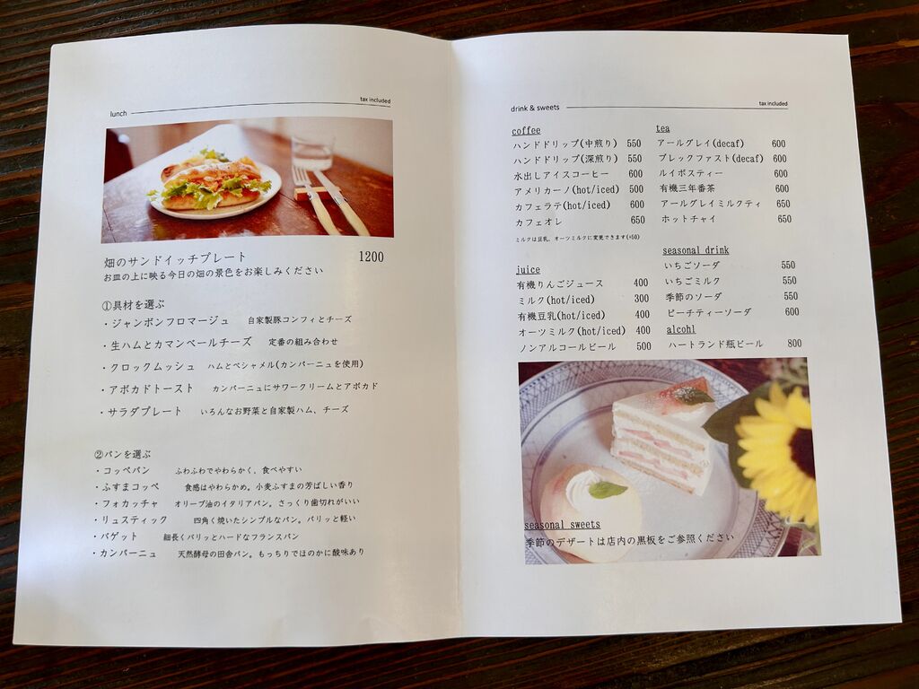 パン屋『一本杉農園』さんに併設されているカフェ『蒔時』さんにランチで伺いました♪畑のサンドイッチプレートは好きな具材とパンを選ぶことが出来ます。私は、生ハムとカマンベールチーズ×カンパーニュにしました。ハード系のパンは噛むほどに味わい深く、塩気のある具材との相性が良いです!食後にシャインマスカットのショートケーキ、季節のソーダ(梅)を注文。生クリームが甘さ控えめで、マスカットの甘みが感じられてとっても美味しかったです^ ^今回は子連れで行きましたが、一本杉農園さんのパンを購入して、こちらで食べることもできました。温めていただいたり、食べやすい大きさにカットしていただいたりと、店員さんの細やかな気配りに感動しました。またぜひ伺いたいです♡