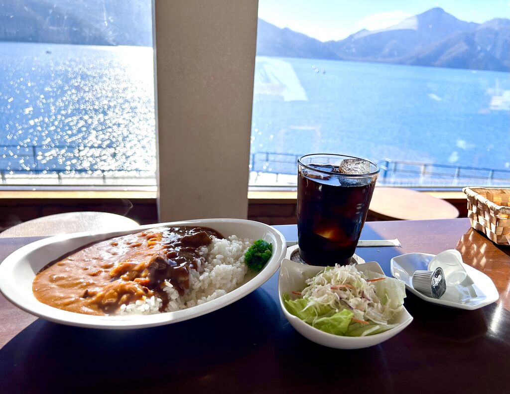 中禅寺湖を観光した際にランチで伺いました♪ここのお店はなんと言っても、美しい中禅寺湖を眺めながら食事ができるところが良いです!!ビーフカレー、トースト(ジャム・バター)、ホットチョコレートを注文。カレーは子どももパクパク食べられる美味しさで、追加注文させていただきました^ ^ホットチョコレートは、旅で疲れた時にちょうど良い甘さで癒されました。外の駐車場には『中禅寺湖に来てます』の看板があり、フォトスポットになっています。記念に一枚撮らせていただきました。観光の際に、オススメの喫茶店です☆
