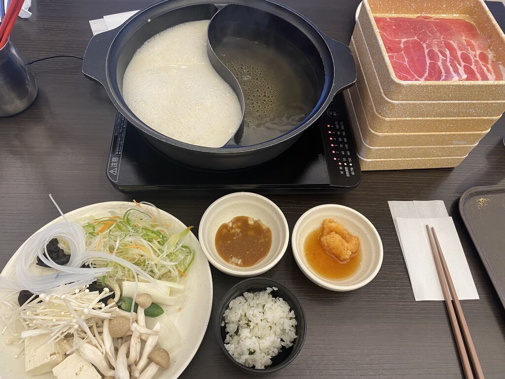 ケケママさん さくら市 総合レベル125 ファン84 クチコミ しゃぶ葉 宇都宮戸祭店 宇都宮市/しゃぶしゃぶ・すき焼き 126 6 ランチで、豚3皿のコース(¥1,319)を注文。スープ2種選び、野菜、スイーツ、ライス、麺、カレー等バイキングです。種類豊富な野菜がたっぷり摂れ、身体に優しいです。ワッフルやクレープも自分で作れるので、美味しくて楽しめます。某クーポンで8%引きにもなり、コスパ良くしゃぶしゃぶが頂けました。 訪問日:2025.12.19 クチコミタグ #ランチ #お1人さま #家族 #がっつり #おいしい #また来たい "ぐッ"ときた! 9人 ケケママさんのクチコミ一覧に戻る