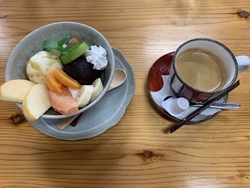おいしい記憶があるGENさんに再訪しました。以前も食べたハンバーグランチ。おろしダレがかかったハンバーグはお肉がギュッと食べごたえあって添えられた野菜とも相性よく。具沢山のお汁も嬉しいです。ビーフシチューはさらさらとして味に深みを感じました。唐揚げは4つくらいでかなりのボリュームでしたがおいしいおいしいと子どもが完食。食後には大きい器のクリームあんみつ。たくさんのフルーツにもちもちの白玉やぷるぷるわらび餅、バニラアイスがあんみつと溶け合い口の中が超ハッピー♪いろんな甘みにひたりながら濃いめのブラックコーヒーでごちそうさま。どれもおいしく満足すぎるランチタイムでした。