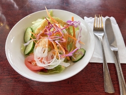 いつかはランチをいただいてみたい!と思っていたバンマリーさんに、念願叶ってお昼に伺うことができました。ランチタイム開始ぴったりくらいの到着だったので、運良くすぐに席に座れました。食事をしている間にも次々とお客さんが来店され、気が付けば満席に。早めに到着できて良かったです。お水と一緒にレモングラスのハーブティーをいただき、優しい香りにホッとします。私はCランチの「ポークジンジャーとライス」と+200円でサラダを注文。他のお客さんは、Bランチのチーズハンバーグを注文されている方が多かったです。ポークジンジャーはピリッと生姜の辛さが程よく効いていて、ごはんの進む美味しさ。付け合わせの人参も美味しかったです。食後には追加でケーキもいただき、大満足のランチでした。今度は、お店でしかいただけないパフェにも挑戦してみたいです。美味しい幸せをありがとうございました。ごちそうさまでした〜。