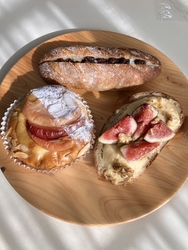 日曜日のお昼ごぱんを買いに「K Bon Pain」さんに伺いました。11時過ぎの来店でしたが、既に売り切れの商品も。次々とお客さんが来店され、人気の様子が伺えます。それでも美味しそうなパンがたくさん並び、どれにしようか迷ってしまいます。美味しいコーヒーの試飲をいただきながら、じっくり選べました。今回は「鴨ネギのバケットサンド400円」「喜連川温泉ナスのフォカッチャ380円」「きのこのフォカッチャ380円」「いちじくのオープンサンド480円」「アップルパン300円」「ラムレーズンサンド420円」を購入。帰宅後、さっそくいただきました。まずは鴨ネギサンドから。バリっとハード系の生地に、鴨とネギがたっぷりサンドされています。ネギにはキュウリも混ぜてあって、思ったより辛くない。むしろ野菜の甘味が感じられます。喜連川温泉ナスのフォカッチャは、ナスがとろっとろでトマトソースとの相性も抜群。もっちりした生地も最高。きのこの方は、ゆず味噌が効いていてこれまた美味。たくさんのきのことれんこんのシャキシャキ食感も面白かったです。甘いパンは3時のおやつに。オープンサンドは、完熟したいちじくとクリームの塩味、ナッツとはちみつのハーモニーがたまりません。りんごが乗ったパンは、しっとりもっちりの生地に、りんごの甘酸っぱさと食感が素敵です。ラムレーズンサンドは、ラムの香りは思ったより控えめ。がっつりハード系のパンにぴったりです。また、旬の素材を使った美味しいパンたちを求めて伺いたいです。美味しい幸せをありがとうございました。ごちそうさまでした~。