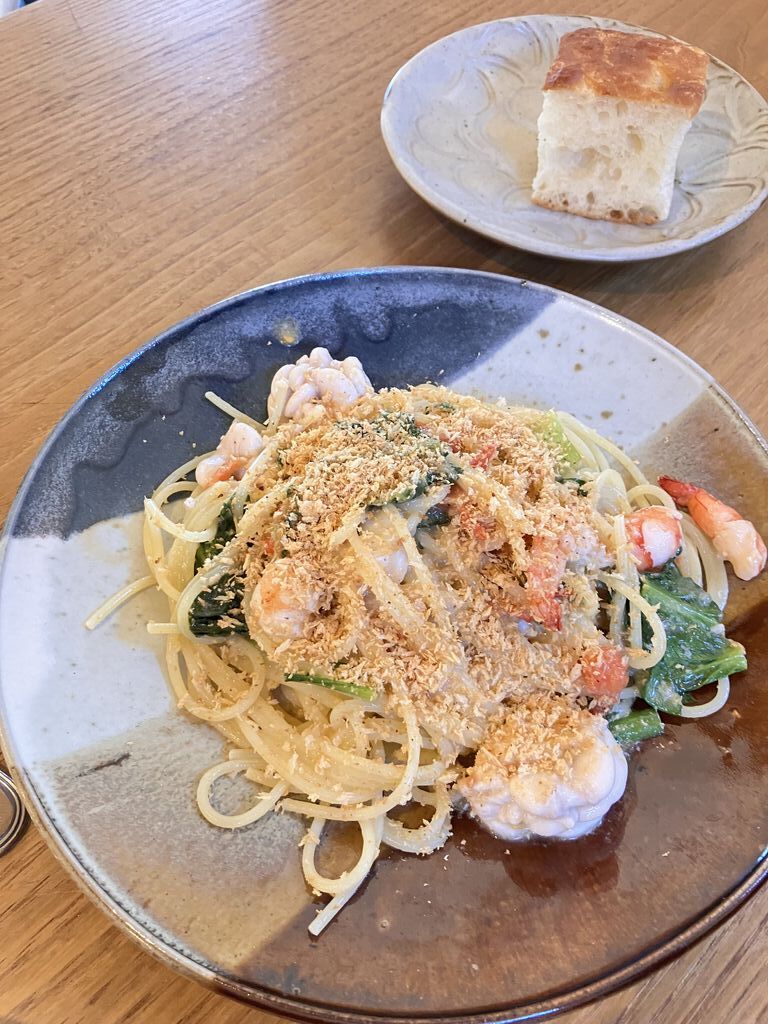 ずっとずっと伺いたいと思っていたosteria totoさんに、やっと伺うことができました!前もって神様が予約をしてくれていたので、すんなり入店。今回はパスタが選べる「ランチセット2200円」をいただきました。私は本日のショートパスタ「カバタッピ 那須どりとしいたけクリームソース」を、神様は本日のスパゲッティ「エビと真ダラ白子・プチトマト・小松菜のペペロンチーノ」を注文。+300円でジェラートをドルチェミストに変更しました。カウンター席なので、目の前で手際よく調理されている様子を見ながら、わくわくどきどき待たせていただきました。最初に運ばれてきたサラダは、彩も鮮やかでとってもきれい~。旬のお野菜がたくさん並べられ、甘さや苦み、素材の美味しさがぎゅぎゅっと詰め込まれた一皿でした。そして、パスタが登場!くるくるっと可愛らしい形のパスタに、ごろごろと大きな鶏肉やしいたけがたっぷり入っています。パスタのもちっとした食感に、クリームの濃厚なお味、ジューシーな鶏肉と肉厚なしいたけがたまりません~。神様のパスタも味見させてもらいましたが、こちらも衝撃的な美味しさ!とろ~っととろける白子に、小松菜の苦み、トマトの酸味、ぷりっとしたエビと香ばしいかおり…。ふたりして無言であっという間に完食です。パスタの余韻に浸りながら、最後にドルチェとコーヒーをいただきました。濃厚なチーズケーキに、しっかりと卵のお味が感じられるプリン、さっぱりとしたジェラートの組合せは、もうこれ以上ない美味しさでした。今回は時間の関係でランチセットをいただきましたが、次回は予約してコースをいただいてみたいです。美味しい幸せをありがとうございました。ごちそうさまでした~。