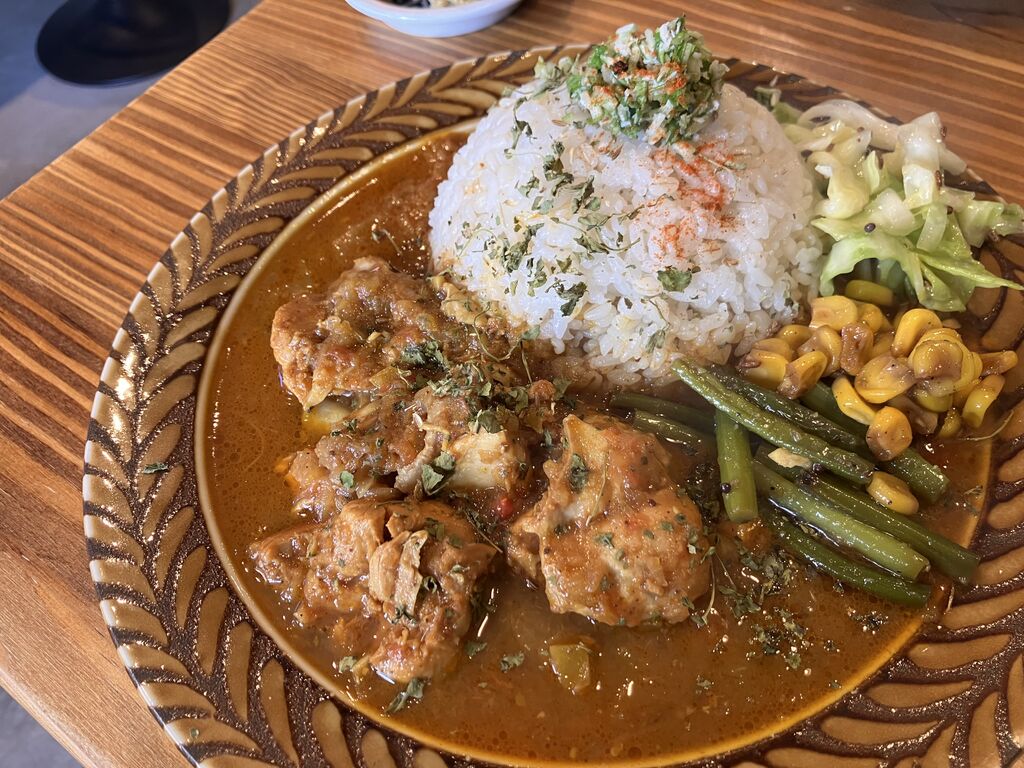 3月半ばの土曜日。美味しいカレーを求めて伺いました。到着時には、外で待つ方が何人かいました。しばらく待ってから入店。この日のメニューは「アップルシナモンチキン1200円」と「タイ風スパイシーキーマ1200円」の2択。辛いのが苦手な私は、アップルシナモンチキンをいただきました。お腹の調子がいまいちな神様も、アップルシナモンチキンにサバエッグをトッピング。さほど待たずにカレーが運ばれてきました。美味しそうな盛り付けに、毎回「うわぁあ~」と、感嘆の声がこぼれます。柔らかなチキンに、りんごの甘味を感じつつもスパイシーな味付けにうっとり。サバエッグがいい味していて、神様は「これだけで飯が食いたい」というほどお気に入りです。私たちが入店した後のお客さんは、ちょうど炊飯のタイミングでお断りされていました。タイミングよく入れて良かった~。日替わりでメニューが変わるので、次回はどんなカレーに出会えるか楽しみです。美味しい幸せをありがとうございました。ごちそうさまでした~。