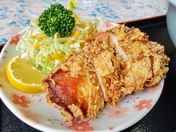 塩谷町田所、国道461号沿いにある 大内食堂さん。お昼時に店の前を通るといつもたくさん車が停まっていて、前から気になっていました。そして今日、ついに大内さんへ突撃~(*^.^*)♪ 私はラーメンセット 900円(半ライスと、唐揚げ・ヒレカツ・メンチカツ・コロッケの中から1品付き)、旦那さんはおすすめの豚丼セット 1000円(ちびっこラーメン付き)をいただきました。どちらもボリュームがあって、何より美味しいです。ラーメンは あっさりスープに喉ごしの良い麺、厚めで柔らかなチャーシューが嬉しい。ジューシーな唐揚げ、ピリ辛なのにマイルドな豚丼もとっても美味しかったです。行ってよかった。大正解、大満足ランチ (*^.^*)♪