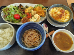 日曜のお昼、両親おすすめのお店「カフェ ぴっぴ。」で初ランチしてきました。本日のランチ、おにぎりセットを注文。本日のランチは、おかずを2人でシェアして食べてもOKとのこと。最近1人前の量を食べられなくなってきた母とシェア出来るので、ありがたいシステムです♪お一人でお店を切り盛りされているので、料理の提供に少し時間がかかることもありますが、その間、お茶や焼き菓子を出してくれたり、気配りしてくださるので、待ち時間も気になりません♪一つ一つのお料理が丁寧に作られていて健康的♪グラタンにも野菜が沢山入っていて、おにぎりも ふっくら( ꈍᴗꈍ)♪ デザートのブルーベリーチーズケーキもしっとり美味しかったです。また伺いたいと思います。