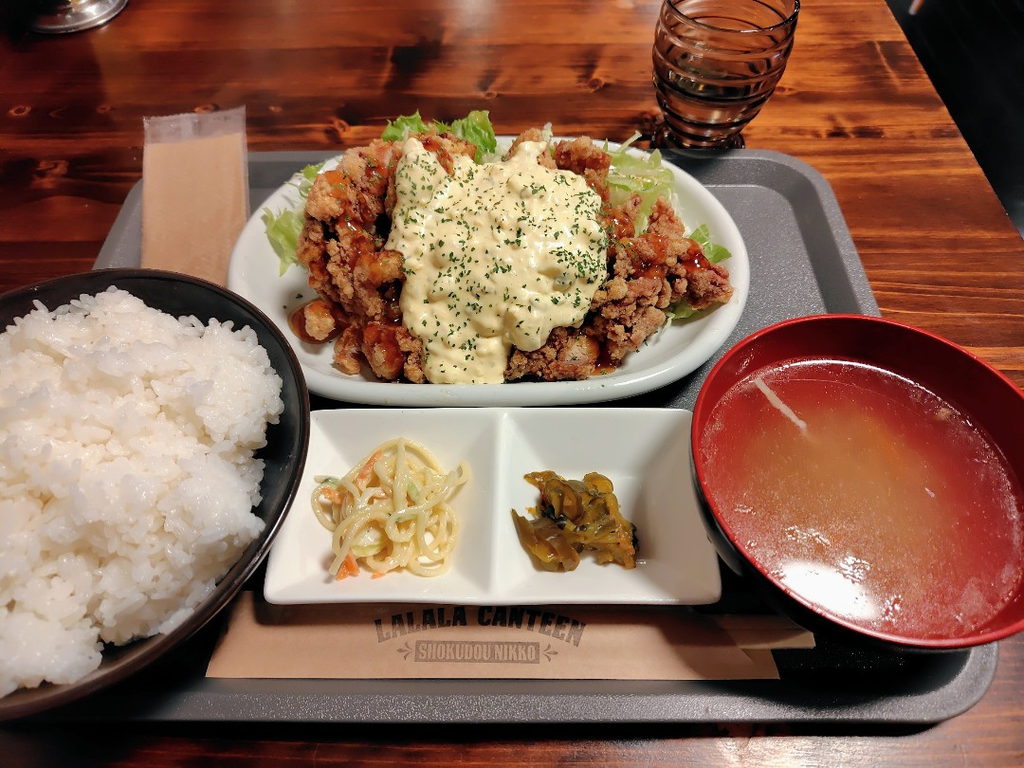 土曜のお昼、せっかく日光に来たんだしと、所野にある「ラララ食堂」へ行ってきました。メニューはどれも魅力的でしたが、腹ペコお腹がチキン南蛮を選択♪店員さんに「うちのご飯、大盛りなんですけど、そのままで大丈夫ですか?」と聞かれ、今なら全然行けそう!と思い、「それでお願いします」と返答しました。・・・が、想像をはるかに超えた丼ぶり飯に、顔は笑顔で心はヤバッ!やっちゃった!って感じでした。(確かに前来た時も多いと思ったけど、超久しぶりで忘れてました・・・)。だけど、チキン南蛮もふっくらご飯も本当に美味しくて箸が進むんですよね♪お腹いっぱいになる食堂、ごちそうさまでした。