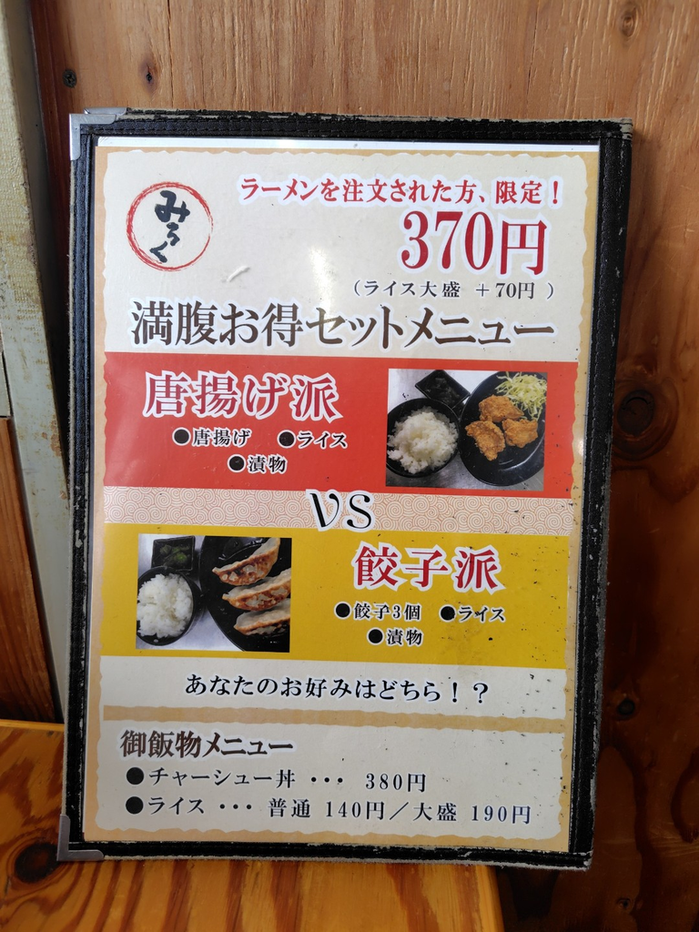 ぽぽ♪さん さくら市 総合レベル135 ファン49 クチコミ らー麺道 みろく さくら市/ラーメン 42 29 和とんこつラーメンと、赤和とんこつラーメン、唐揚げのセット、餃子のセットをいただきました。濃厚なとんこつスープに、卓上にある「すりおろしにんにく」と「紅しょうが」を好きなだけ入れて、元気もりもりスープに。ご飯を浸して食べても美味しいです。餃子も大きくて、野菜の甘みがあり美味しかったです。 訪問日:2026.04.05 "ぐッ"ときた! 3人 ぽぽ♪さんのクチコミ一覧に戻る
