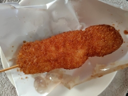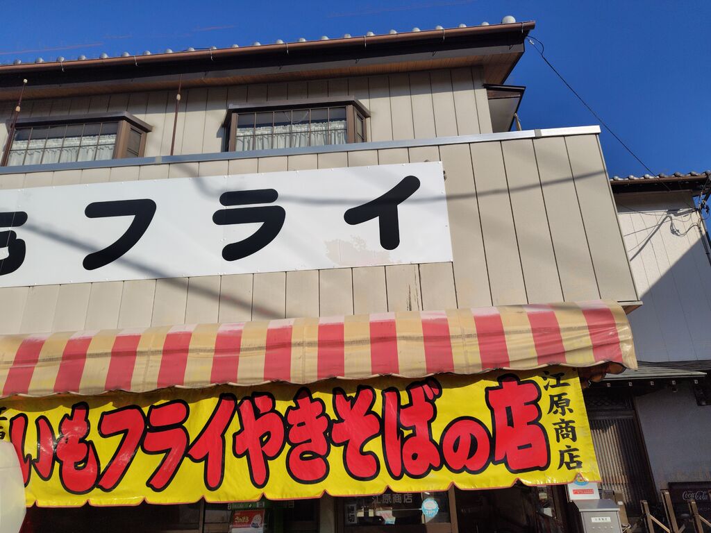 いもフライが、ものすごく食べたくなり、こちらの江原商店さんの口コミを見て、ナビを頼りに行ってきました!平日の昼下がり午後2時過ぎでしたが、待ってる方が二組ほどいました!店内には、サインがずらりと貼ってあり、メディアに取り上げられている有名店なのがわかります。元気な店主の方が、テキパキと対応してくれます。車のナンバーを伝え、車中で待っていると、揚げたてアツアツを運んできてくれました♡モチモチした食感は初体験(๑´ڡ`๑)酸味のあるソースがたっぷりかかっています。ウェットティッシュのお気遣いが嬉しいです♪焼きそばも美味しそうでした(^^)場所も頭に入ったし、リピーター間違いなし!です♬ごちそうさまでした〜♪美味しかったです♫