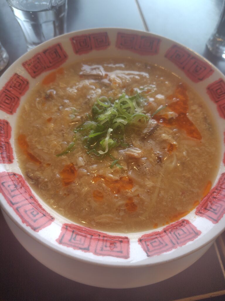 親戚の家に両親と向かう途中、遅めの昼食をとりました♪ メニューが以前来た時と変わっていて、悩みすぎました(笑)酸辣湯麵、坦々麺、レタスチャーハン、日替わり定食餃子付き『麻婆ハンバーグ』各々が、普段家庭では作らないメニューを選んでいました(笑)ランチは平日17時までだそうです!! ネコちゃんロボットが運んでくれました♪ 私が食べた酸辣湯麵は、酸味が強めで本格的な味でした(*´ڡ`●) 中華も良いですね♪支払いはセルフで、ポイントも貯まって良かったです。美味しく頂きました(^^♪ごちそうさまでした〜♡