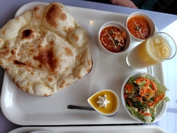 山インドキッチン岩舟店、県南に昨年12月にオープンしてから、ずっと気になっていました。職場の先輩をお誘いして、ランチに行ってきましたよ★本場インドのスパイスカレーが、リーズナブルに食べられるとのことで期待大です❣メニューを見て、お得な『レディースセット』1150円にしました〜♡辛さは5番まで選べます。私は海老とほうれん草&日替わりカレー※今日はエノキとチキン→普通の辛さの2辛、ラッシー、先輩はキーマカレー&野菜ミックスカレー→辛口4辛、オレンジラッシーにしましたよ〜♪ナンか、ライスを選んでおかわりできますとのことで、2人とも迷わずナン!!(笑)ナンには、目がありません(笑)サラダもプチデザートも付きました。私は、程よいマイルドな辛さが好みなので、ナンをちぎって、どんどん食べていきます!止まらなくなる(笑)先輩、辛さを全く顔に出さず、次は5辛いけるなぁと余裕かましてました(笑)焼きたてナンが軽くて薄めなので、パクパクいけちゃいました(^^)ラッシー甘くて美味しい〜(*^^*) みんなにも教えてあげよう!! ごちそう様でした♬大変美味しく頂きました(〃∇〃)