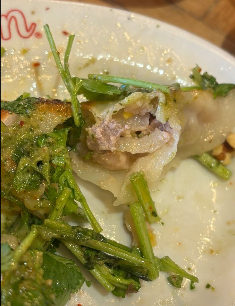 妹が帰省して駅に迎えに行った際に一緒にお昼を食べました☆ちょっと列ができていたので、私が先に並んで待っていたのですが、意外にどんどん進んだので、注文して待っていました。回転が早いので諦めずに並ぶ事をオススメします!私は“焼き餃子ランチセット”858円、妹は“パクチー焼き餃子ランチセット”968円をチョイス。大きな餃子5個は多いかなと思いながら、ペロリ食べられちゃいました♪お店の味をまたおうちでも食べたくて、冷凍餃子2人前と4人前を持ち帰り。じゅわ~と肉々しい美味しい餃子にハマりました(^ー^)