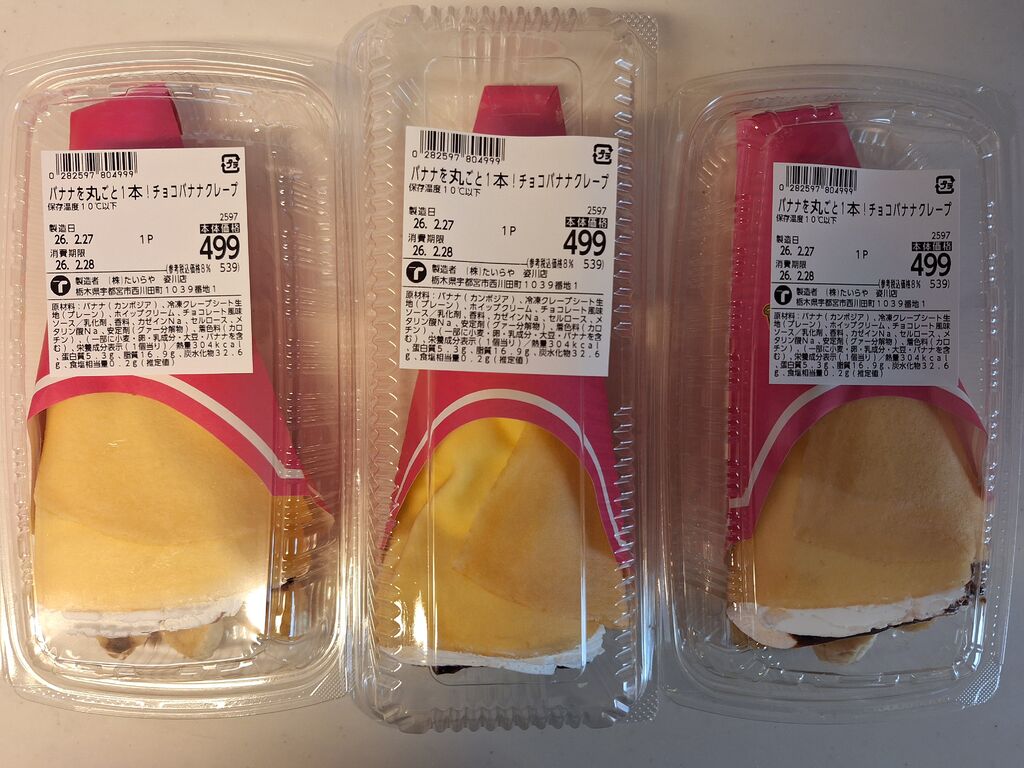 しゅん♪さん 鹿沼市 総合レベル177 ファン149 クチコミ たいらや 姿川店 宇都宮市/スーパーマーケット 28 1 クリーニングの受け取りがてら買い出しに寄りました☆バナナが丸ごと1本入ったクレープを見つけ、おやつに即買い!夕飯は、組み合わせてお得な、2パック1000円+税のお魚バイキングと、2パック555円+税のお惣菜をチョイス♪いちごは、フルーツ好きな息子の分だけ、スカイベリーを199円+税で購入できました(^ー^) 訪問日:2026.02.27 "ぐッ"ときた! 10人 しゅん♪さんのクチコミ一覧に戻る