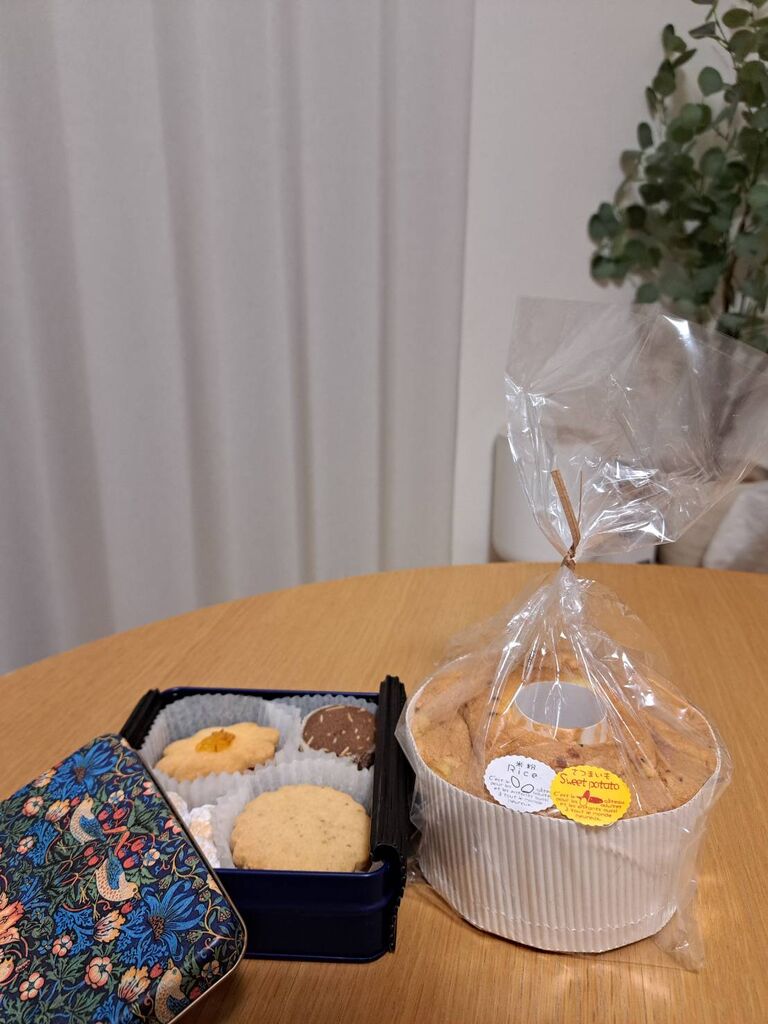 [和気 薫 菓子工房]さんの[米粉サブレ]と[米粉シフォンケーキ/さつまいも]を戴きました。わぁ!嬉しい♡こちらのシフォンケーキは食べたことがあるので美味しいことは知っています。初めていただく[米粉サブレ]は[伊予柑ジャム][くるみ][ココア][ココナツボール]の4種類…あまりにも美味しくてビックリ♪美味しくて手が止まりません。今度お店で見掛けたら買ってみたいと思います。(注:ステキな缶はその方がプレゼント用に用意されたものです)美味しいシフォンケーキとサブレ…ありがとうございました。ごちそうさまでした•ᴗ•ꕤ*