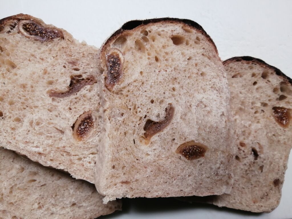 はじめましての【萬堂本舗】さんの[いちじくパン]を手土産にいただきました。わぁ(‘0’)美味しそう♪ずっしりとしています。2センチ位の厚切りにして先ずはそのままパクり…小麦の良い香りとふんわり生地が美味しいです。次にトーストしてみました。表面は香ばしくてカリカリでありながらも内側はもちっと感があり無花果がアクセントになって美味し~い!石窯で焼いた美味しさと無花果の美味しさを感じられるパンでした。営業日と時間は限られているようですが直ぐに完売してしまう人気店とのこと。お店に行ってみた~い♪ごちそうさまでした•ᴗ•ꕤ*