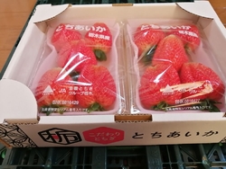 県外の息子夫婦とご実家に美味しい苺を送りたいと思い[矢板市木幡]…シャープの建物後ろにある苺屋さんに行ってきました。いちご狩りや発送業務はやっていませんが直売はされているので購入することができます。一段と二段の[とちあいか]がありましたがこの時期にしかない大粒な[とちあいか]に決めました。[とちあいか]…甘くて美味しいですよね♡それを箱入りにしてもらいました。こちらの苺屋さんは地元のスーパーや洋菓子屋さんに卸しているそうで「とっても甘い苺」と評判です。ご主人と奥様がとても丁寧で親切なご対応なので大好きな苺屋さんです。