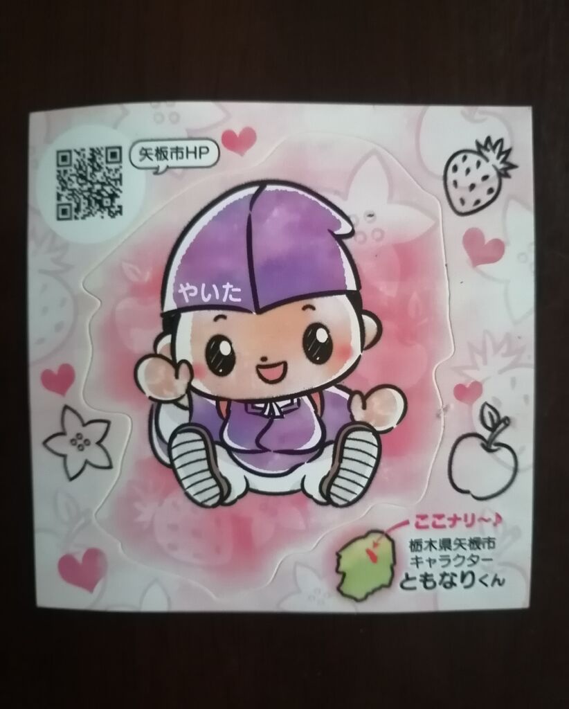 思いもよらず矢板市のキャラクター【ともなりくん】に遭遇!可愛らしい【ともなりくん】のシールも貰えました♪【ともなりくん】は快く記念撮影にも応じてくれます。そんな人気者の【ともなりくん】が誕生したのは2010年…文武両道を好み和歌を愛した[塩谷朝業(しおのやともなり)]をモチーフにしたキャラクター【ともなりくん】です。イベントや市のPRなどの機会に出没します。どこかでお会いしたら【ともなりくん】をどうぞよろしくね(⌯'ᵕ'⌯)´-