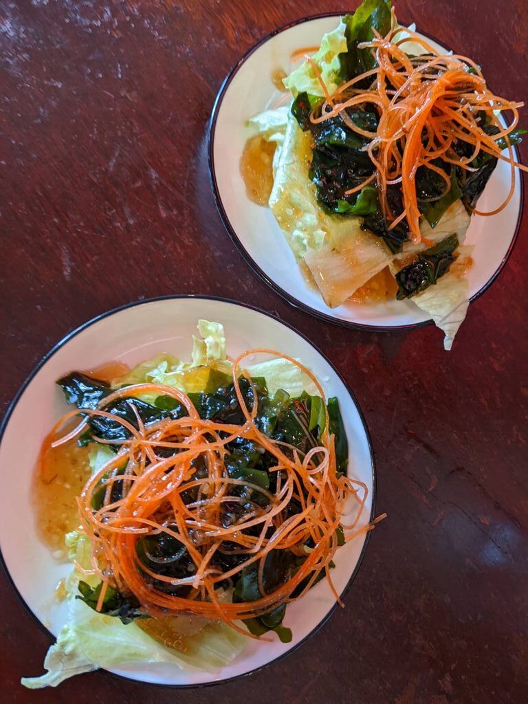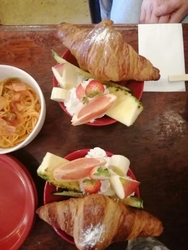 このところタイミングが合わず久しぶりになってしまった友人とのランチ…「ジュリエに行きたい♪」とリクエストがあったので行ってきました。駐車場には開店時間前から車が数台停まっており開店と同時に満席になるほどの人気ぶりです。そして次から次に来店される方…空いている席がなくて仕方なく帰る方…今日は何事?と思うくらい女性客で埋め尽くされていました。私はいつもの…と言いたいところですが今日は《ミートドリアとフルーツクロワッサン(ドリンクはホットコーヒー)》…友人は《ナポリタンとフルーツクロワッサン(ドリンクはホットティー)》をお願いしました。待つことなくニンジン・ワカメ・レタスの[サラダ]が登場。ドレッシングが美味しいです。それからメインの料理が来ました。熱々フーフーしながら食べる[ミートドリア]美味しい♪[フルーツクロワッサン]の本日のフルーツはフレッシュな苺・りんご・メロン・オレンジ・パイナップル・バナナ…食べやすいように切り込みが入ってるのが親切ですね~♪サックサクのクロワッサンにた~っぷりホイップクリームを付けて…幸せな美味しさです♡「お席を移動してもらっちゃってごめんなさいね」…と、ママが[エスプレッソアイス]をサービスしてくれました♪わ~(‘0’)嬉しい♡ありがとうございます。こちらのアイスもめちゃ美味しかったです。美味しくて大満足のランチ…ごちそうさまでした•ᴗ•ꕤ*また来ま~す♡