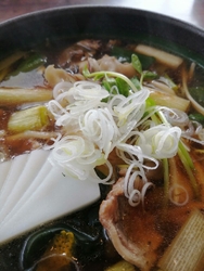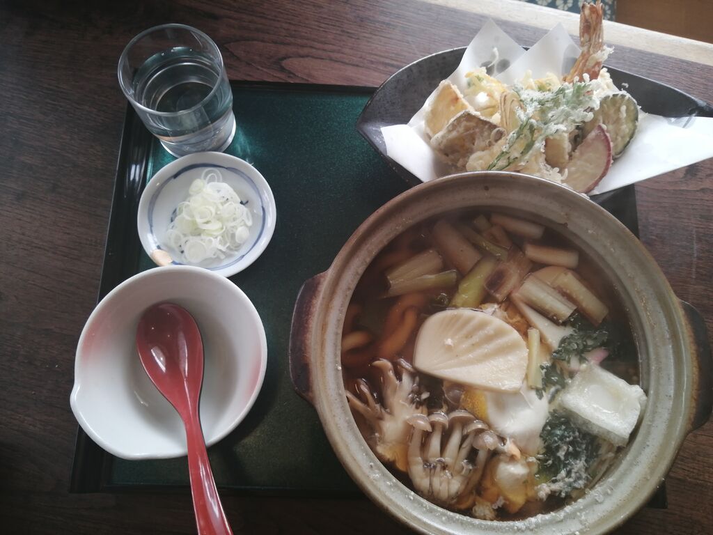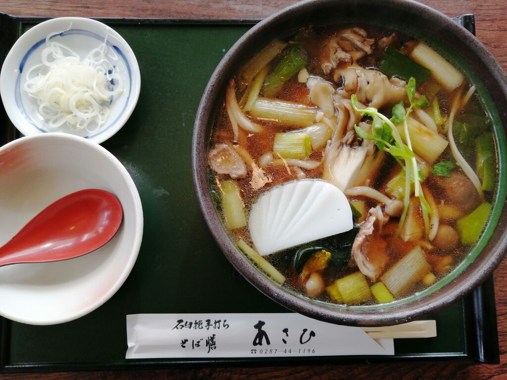 昨夜雪が降り今日は朝から寒~い。「あったかいうどん食べに行こう♪」…とお誘いを受け塩谷庁舎西側にある【蕎麦膳 あさひ】さんへ久しぶりにお伺いしました。[鍋焼うどん/¥1,900]と[鴨南蛮/¥1,600]をお願いしました。カメラのレンズが曇ってしまうほど熱々の[鍋焼きうどん]は具沢山&お餅が入ってる~♪別皿に大きなエビ天と数種類の野菜の天ぷらが付いてきます。鴨肉、焼きネギ、舞茸、シメジ、蒲鉾、ワカメ、かいわれ大根…こちらも具沢山の[鴨南蛮]…ほんのり柚子が香る汁とモチモチのうどん美味しいです。お蕎麦じゃないのに[蕎麦湯]もいただくことができトロトロ濃厚で美味しかったです。冷えたカラダもすっかり温まりました。美味しかった~♪ごちそうさまでした•ᴗ•ꕤ*