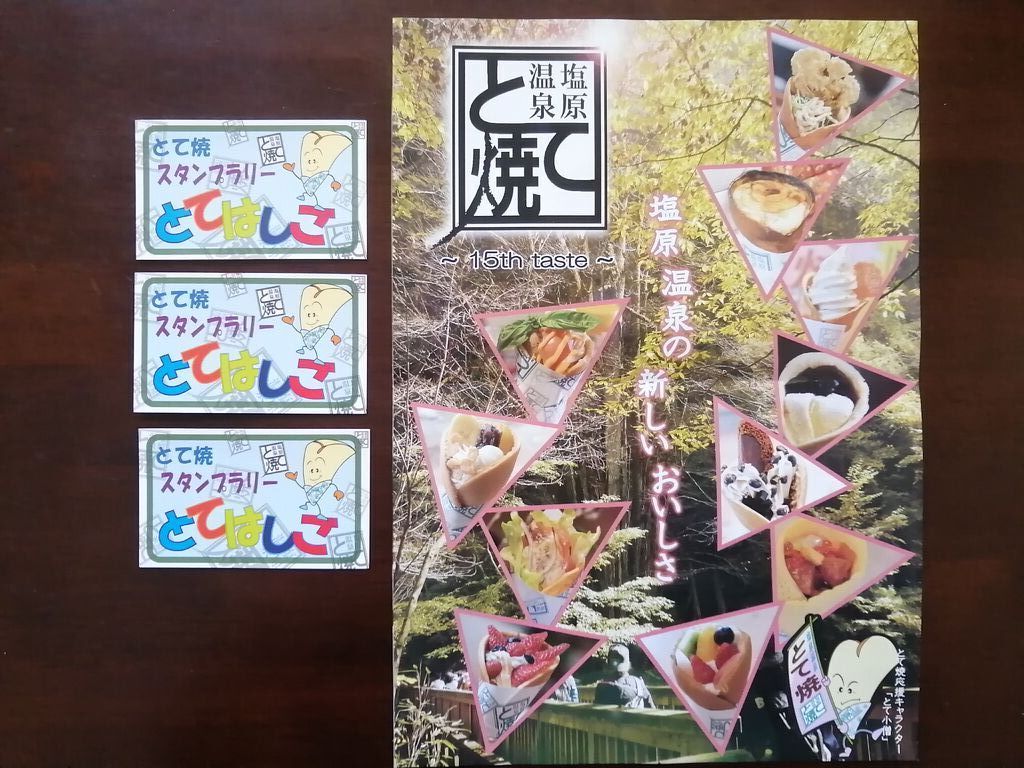 塩原に来たからには名物の[とて焼]を食べなきゃ!…と思いホテルにチェックインする前にお邪魔しました。この辺には[とて焼]のお店が数軒ありお店によって中身が違います。こちら【今井屋】さんの[とて焼]はスィーツ系…黒豆、黒豆寒天、生クリーム、きな粉、温泉饅頭がふんわり生地の[とて焼]にロールされています。「美味し~い♡」思わず笑みが溢れてしまう美味しさです。お饅頭は「少しでも作りたての方が良いと思うので翌日チェックアウトしてから来た方が良いのでは」…と、ご親切なお言葉をいただきましたので翌日再びお邪魔して[温泉まんぢう/こしあん]×10個と[田舎まんぢう/つぶあん]×10個をお土産用に購入しました。こちらのお饅頭も美味しくてペロリでした。[とて焼スタンプラリー]のスタンプカードで[とてはしご]を制覇してみたいです。ごちそうさまでした•ᴗ•ꕤ*