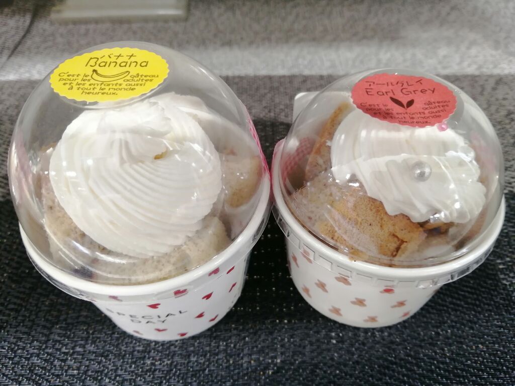 今日はバレンタイン♡大好きな[和気薫工房]さんの[りんごのガトーインビジブル]と[カップシフォン/バナナ/アールグレイ]を頂きました。わぁ(‘0’)ありがとうございます♪どちらも初めていただきます。[りんごのガトーインビジブル]…ずっしりと重たくてカットしてみると薄切りされたりんごが何層にもなっていてキレイな断面です。「いただきまぁ~す♪」…ほんのり甘い生地にりんごがアクセントになって美味しいです。[カップシフォン]…見た目も可愛らしくホイップクリームたっぷりで嬉しい♪米粉のガトーインビジブルも米粉のシフォンもどちらも美味しかった♡ごちそうさまでした•ᴗ•ꕤ*