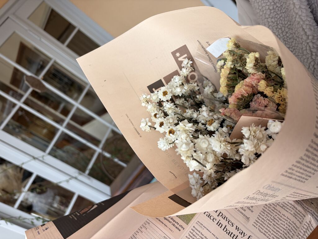 今日は久しぶりに娘と2人きりのお出掛け♡「気になるドライフラワーのお店があるんだ♪」…とナビを頼りに行ってきました。雪景色に合うステキな外観。お店に入るとそれ以上にステキ♡ウッドチップを敷き詰めた床…天井一面のドライフラワー…魅力的な装飾品…秘密の扉…全てにおいてステキ♡もはや感動しかない。どれを買おっかな〜たくさんありすぎて迷う。私はこの時期らしい季節感のある[ネコヤナギ]娘は珍しい黄色とオレンジ色の[スターチス]そして2人とも一目惚れした[白い花のブーケ風]を購入しました。たくさんのドライフラワーと可愛らしいモフモフのワンちゃんに癒されステキな時間を過ごすことができました。また必ずお伺いしたい【ROPOS】さん。オススメです(#^.^#)