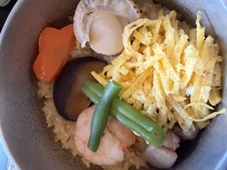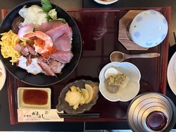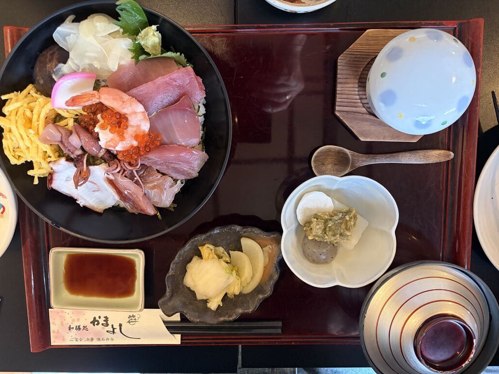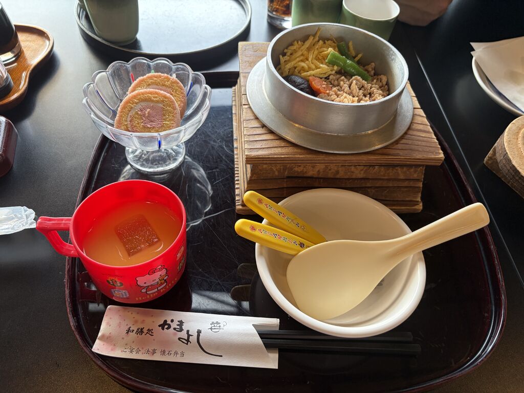 今日は7名で孫の入学内祝いの食事会です。たくさんのメニューに悩んで迷います。どれも美味しそう♪[海鮮丼セット]×3,[鰻丼セット/温蕎麦][国産牛ステーキ御膳][お子様釜飯御膳][お子様めん御膳]…単品メニューから[半熟玉子とカリカリポテトのシーザーサラダ][鶏軟骨唐揚げ][クリスピーポテト][国産牛ステーキ][コーラ]をお願いしました。御膳・セットには小鉢・茶碗蒸し・漬物・汁椀が付きます。(お子様御膳には付きませんがミニデザートとミニドリンクが付きます)[釜飯]の美味しい【かまよし】さんなので言うまでもなく釜飯がめちゃ美味しいです。牛ステーキは自分で焼くスタイル…レアで食べましたが柔らかなお肉でこちらも美味しい。鰻も海鮮丼も美味しかった…とのこと。小鉢には山芋と大根とこんにゃくに[山椒味噌]がのって春ならではの季節を味わうことができました。単品料理も美味しくお腹いっぱいです。ゆったりとまったりと和やかに時間を過ごすことができました。ごちそうさまでした(๑˃̵ᴗ˂̵)