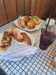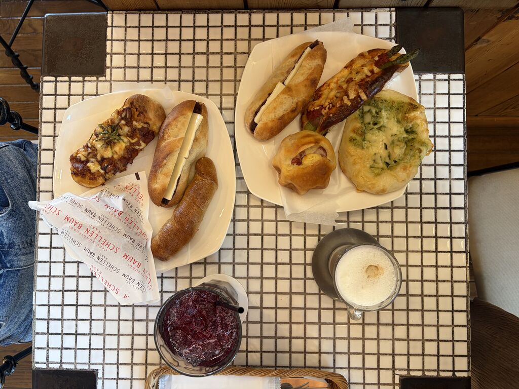 何度か伺ったものの運悪く定休日や臨時休業日にあたってしまいなかなかタイミングが合わなかった【シェレンバウム】さん。熊ちゃんさんの美味しそうなクチコミを拝見するたび「私も春のテーマのパンが食べた〜い!!」…と、ますます行きたいと思っていたところ…や〜っとお邪魔することができました♪お店に入ると美味しそうなパンがたくさん並んでてどれにしようか迷ってしまう…[アスパラベーコン][ソルティ ソーセージ][じゃがまる][タケノコとバジルのフォカッチャ][ザンギ][てりマヨチキン][生フランス/あんバター]×2 [グレープジュース][カプチーノ]を娘とイートインしました。うんうん。どれも美味し〜い♡特に[タケノコとバジルのフォカッチャ]が春を感じられる一品で好みでした♡また食べたい(^o^)「いつもいつもごちそうになってるから今日は私がごちそうするね♪」…と娘がごちそうしてくれました。ありがと〜(#^.^#)ゆっくりまったり美味しいパンをお腹いっぱいいただくことができて大満足♡ごちそうさまでした(๑˃̵ᴗ˂̵)