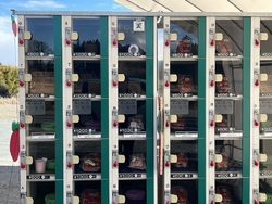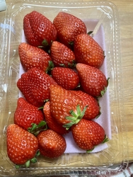 近所にあるこちらの無人販売機。この日は、孫が泊まりに来るというので、孫の大好物の苺を購入しようと寄りました。週末は、イチゴ園の方が常時いて下さるみたいで、迷っていたところ、試食の苺を頂きました。粒の大きさと甘さで、オススメされたスカイベリーを購入しました。ジャム用ということで、陳列されてる1300円のスカイベリーより、300円安く買えました。その他、珍しい紅白セットの苺やロッカーの中には、値下げされたサービス品の苺もありました。甘くてオススメです♪