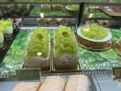 チラシで見たシャインマスカットフェアということで、ケーキを購入しに来店。色鮮やかなシャインマスカットのケーキが、ショーケースを彩ります。あれもこれも食べたくて悩んでいましたが、主人の一言で《旬のフルーツバトン 山梨県産シャインマスカット》にしました。トッピングされてるたくさんのシャインマスカットは、とても甘くてジューシーでした♪スポンジもしっとりとしていて、甘酸っぱい苺クリームとホイップクリームのバランスが絶妙。結局、その日に主人と食べきってしまいました。あとから知ったのですが、こちらのケーキは、ケーキマイスターがお店で仕上げる限定のケーキだそうです。貴重なケーキが食べられてよかったです♪